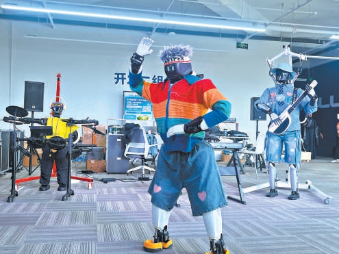 各赛队的备战现场,一块醒目的倒计时牌静静提醒着赛程临近。倒计时牌旁,一支穿着炫酷演出服的机器人乐队正在进行合奏排练。“主唱”机器人顶着一头夸张的银色假发随节奏摇摆,“吉他手”“鼓手”“键盘手”各司其职。