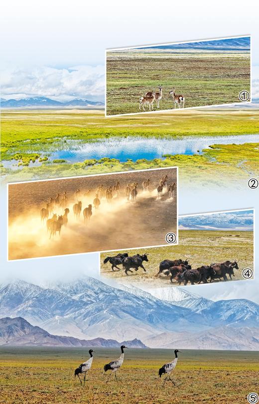 孙布尔介绍,保护区内藏羚羊数量由14年前的4.3万头增长至6.44万头,野牦牛由0.9万头增长至1.2万头,藏野驴由3.8万头增长至5万余头。除大型哺乳动物外,保护区还拥有丰富的鸟类与植物资源,目前记录鸟类200余种,黑颈鹤、金雕、胡兀鹫等国家重点保护鸟类在此繁衍生息,高原鱼类及两栖爬行动物种类同样丰富多样。