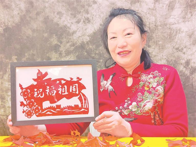 吴素梅展示自己的剪纸作品。宁夏日报记者 左鸣远 见习记者 车雪龙 摄