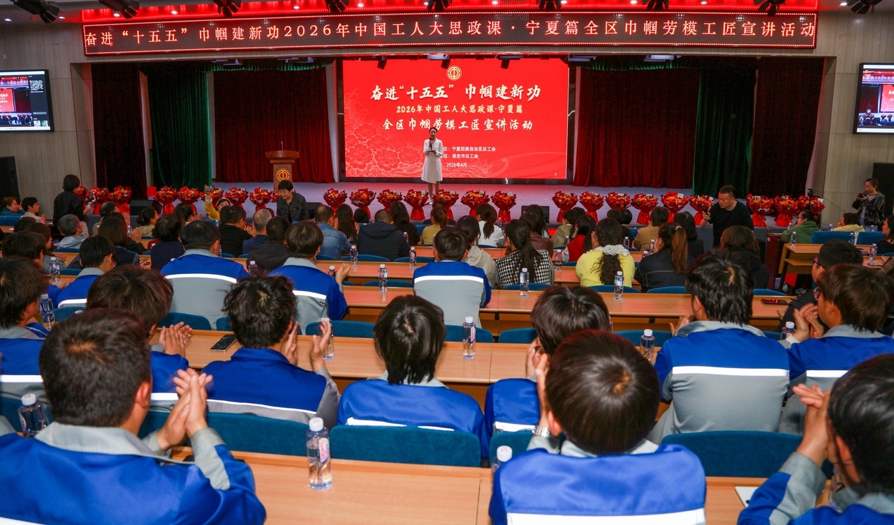 4月14日下午,由宁夏回族自治区总工会主办、吴忠市总工会承办的全区巾帼劳模工匠宣讲活动在吴忠工匠学院举行。来自吴忠市各行各业及宁夏民族职业技术学院等450名职工代表和学生代表认真聆听劳模宣讲。