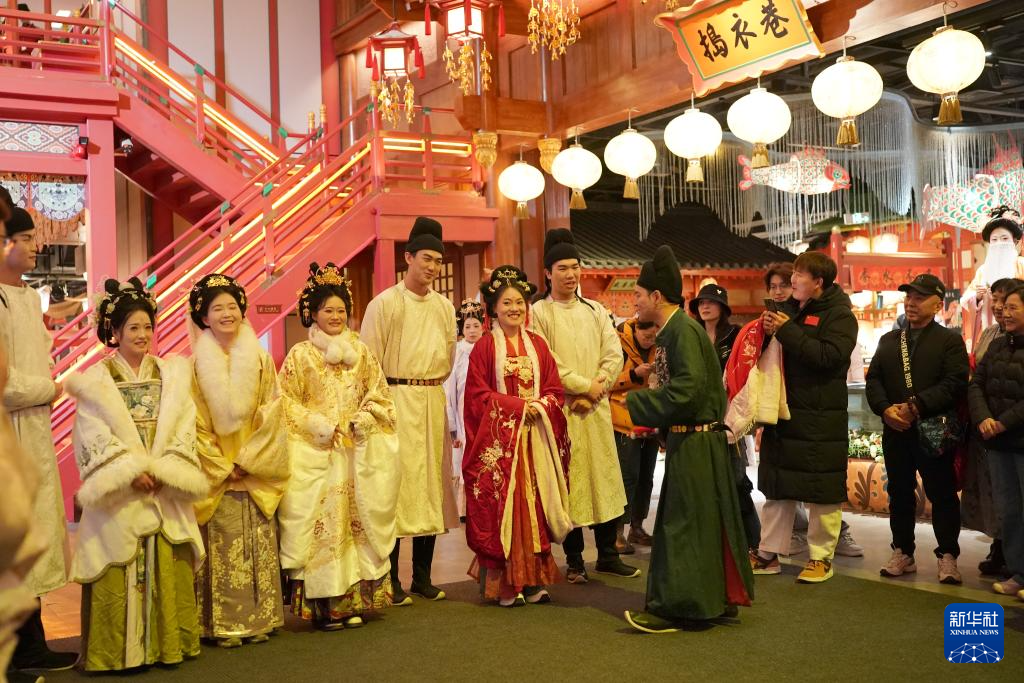 游客在西安长安十二时辰街区观赏以唐诗《琵琶行》为主题创作的沉浸式表演(2025年12月23日摄)。新华社记者 邵瑞 摄