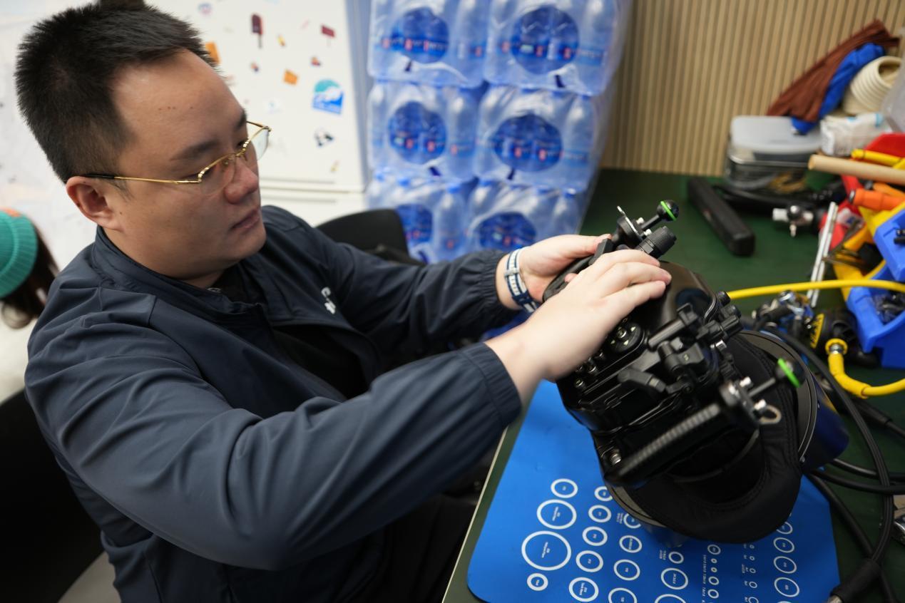 黄心驰正在对设备进行细致检查。