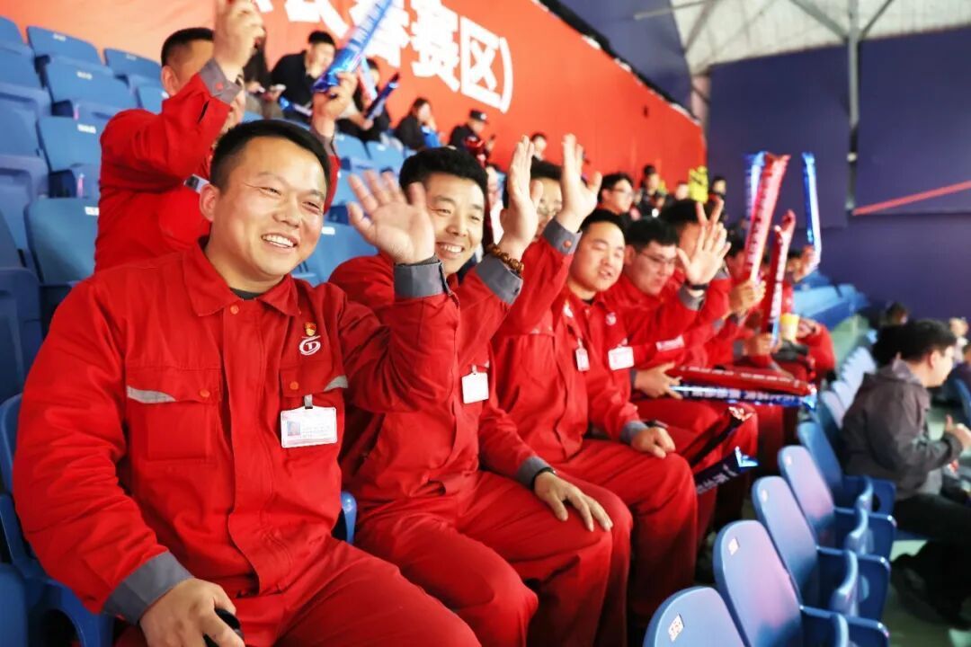 看台上,身着红色工装的鼎庆经贸公司方阵格外抢眼,赛场上的每一次进球,都有他们气势如虹的呐喊助威。团队副队长谢启才的目光紧随篮球的轨迹,脸上满是兴奋:“我已经40多岁了,到现场看球赛还是第一次,我会把这张球票收藏起来,留作纪念!”看台中部,是来自中通快递的蓝色工装方阵,“我们快递行业日常工作节奏紧张,很难有这样的放松机会,今天的比赛看得大家热血沸腾”。职工张恒瑄挥舞着加油棒对记者说:“工会的活动越来越丰富多元,真是走进了我们的心坎里。”