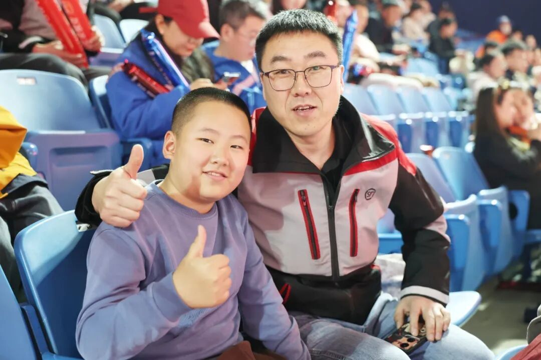 “这是我第一次走进CBA现场,更是第一次看到父亲看球时激情的一面!”在吉林省顺丰速递有限公司观众席上,六年级的郑篪靠在父亲郑广超身边,眼睛亮闪闪地告诉记者,“爸爸每天都很忙,今天能陪我来看球,我特别高兴!”和父亲王辉一起来观赛的王星程,目前上小学三年级,每当有球员投进一个三分球,他就跟着跳起来鼓掌,他说:“我在学校也打篮球,但这里的篮筐太高了,我以后要长得更高,也来这里打球,让爸爸为我自豪!”