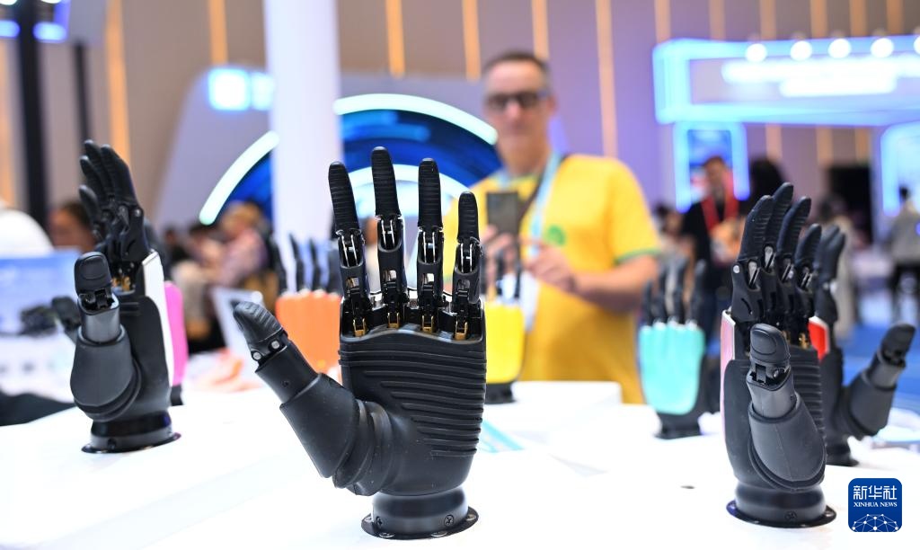 这是4月15日在广交会上拍摄的灵巧手。新华社记者 邓华 摄