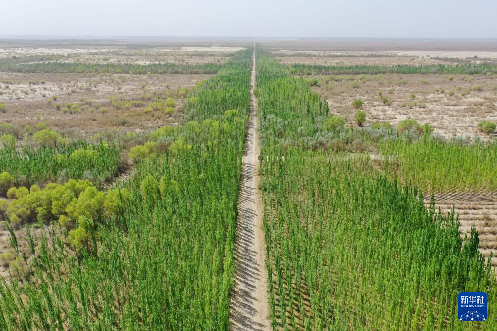 塔克拉玛干沙漠边缘阻击战打响以来,新疆依托生物治沙项目,通过乔木护绿、灌木固沙、药材增效,构建起“乔、灌、药”立体防护网,让荒漠逐步焕发生机。
