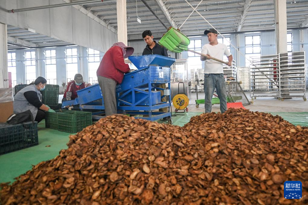 在新疆阿克苏鑫奕泽农业科技有限公司,工人在分拣肉苁蓉切片(4月14日摄)。新华社记者 丁磊 摄