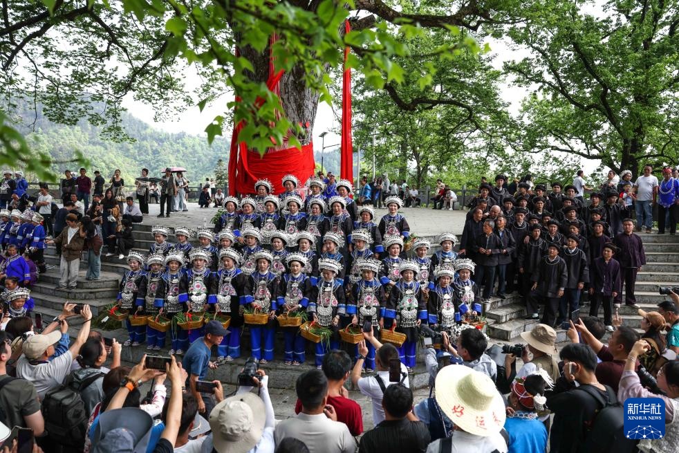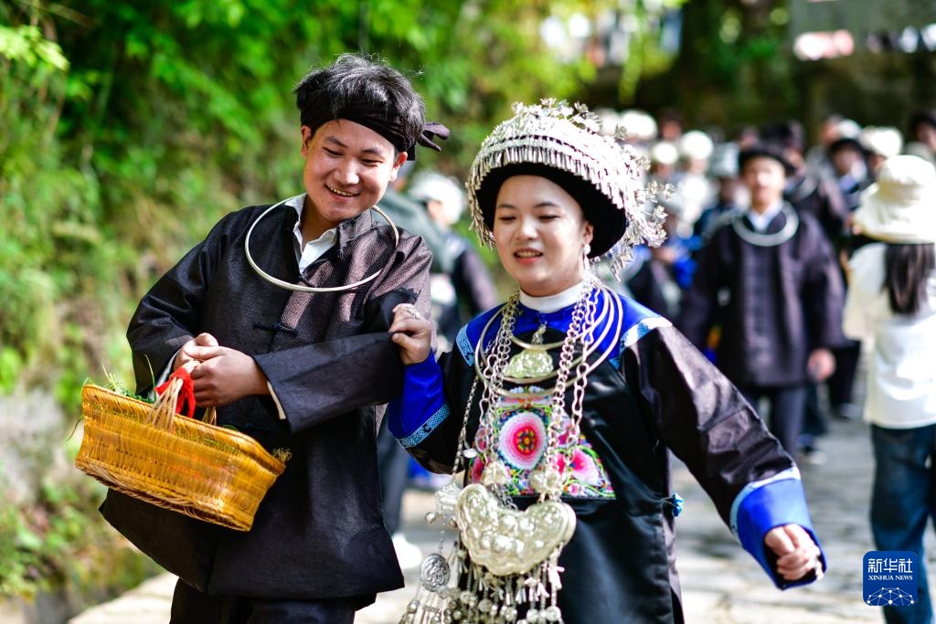 4月19日,侗族群众在贵州省镇远县报京侗寨参加“三月三”讨葱定情活动。新华社记者 杨文斌 摄