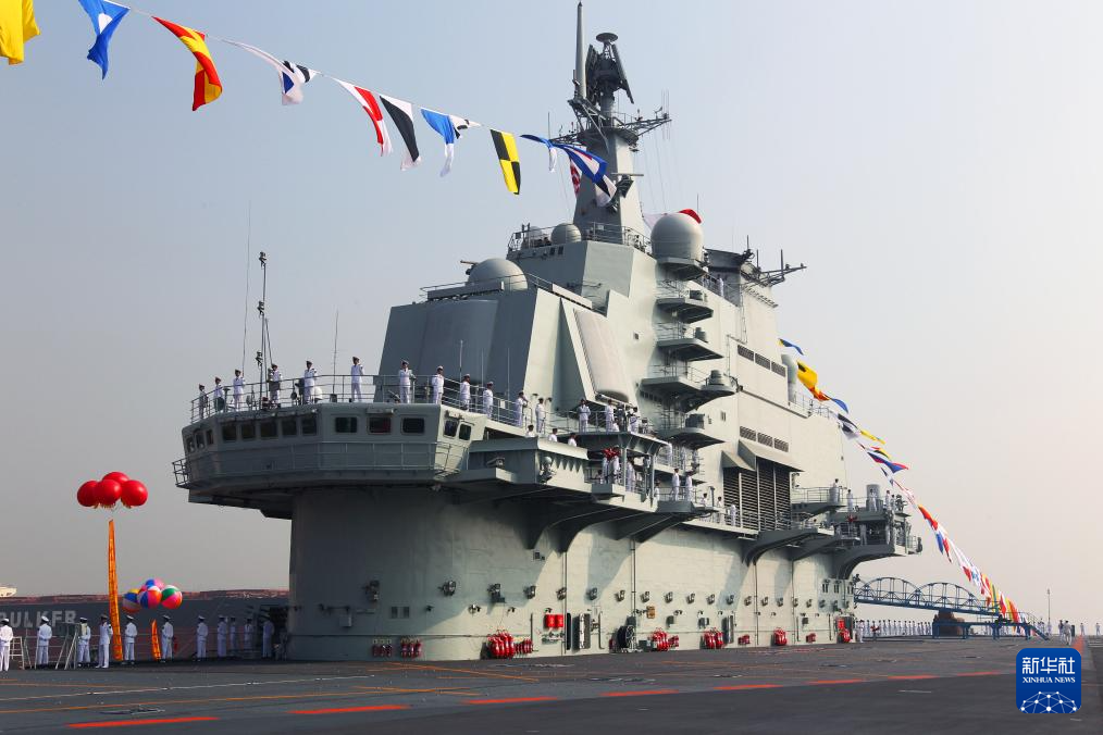 2019年12月17日,我国第一艘国产航空母舰山东舰在海南三亚某军港交付海军。经中央军委批准,我国第一艘国产航母命名为“中国人民解放军海军山东舰”,舷号为“17”。新华社记者 李刚 摄