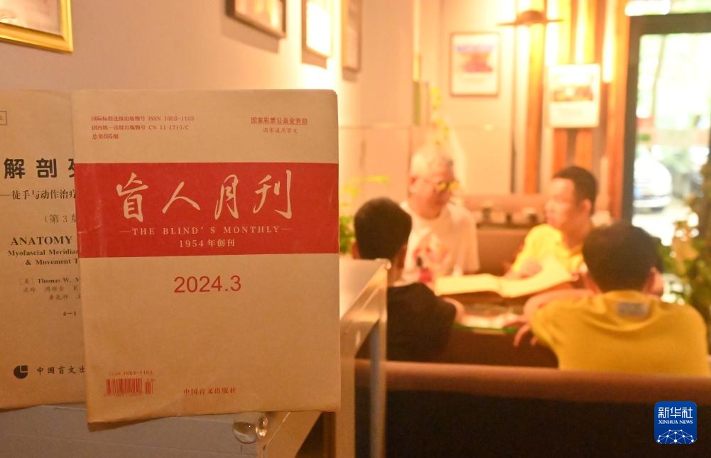 4月22日,在广西南宁市明秀东路的盲人读书角,视障人士在读书学习。新华社记者 陆波岸 摄