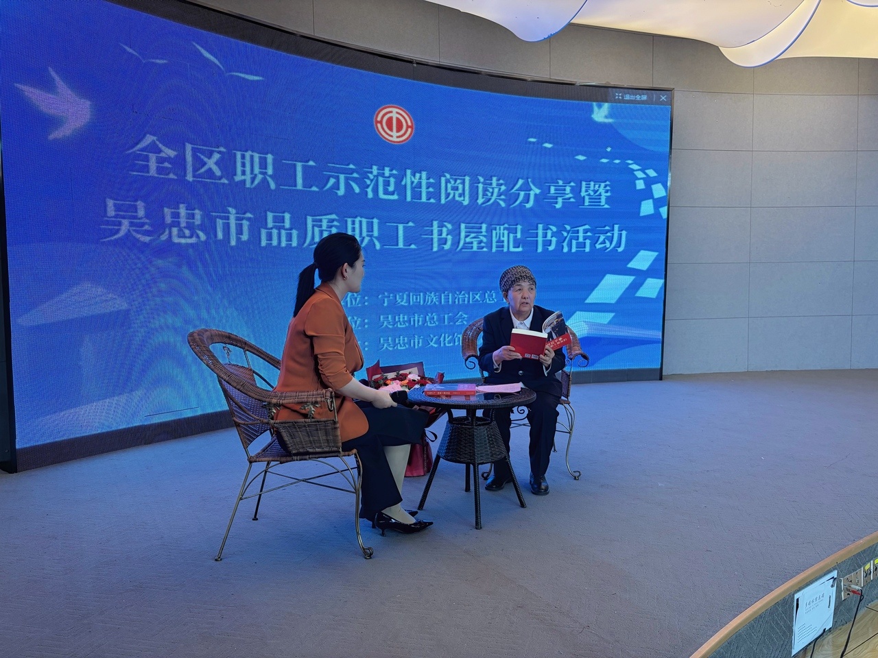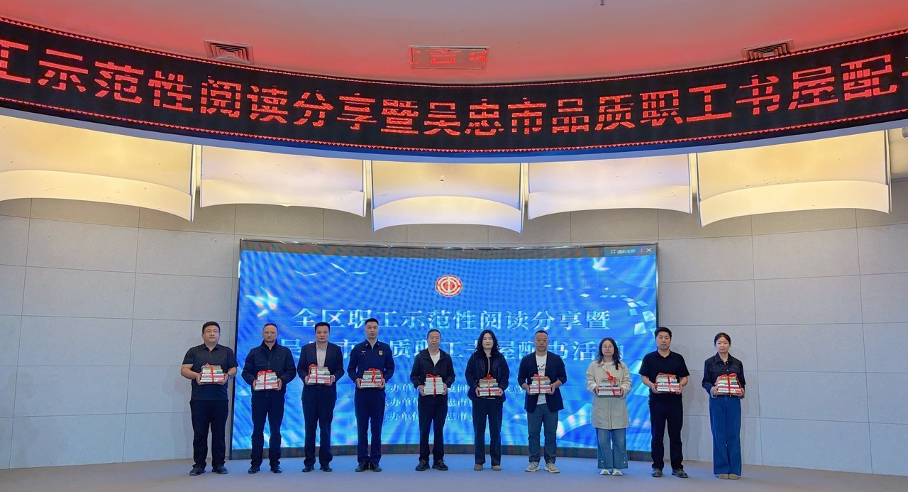 4月21日,由宁夏回族自治区总工会主办、吴忠市总工会承办、吴忠市文化馆协办的宁夏职工示范性阅读分享暨吴忠市品质职工书屋配书活动在吴忠市文化馆多功能厅举办。各县(市、区)总工会、工(农)业园区总工会分管领导,各基层工会职工书屋负责人及职工代表共100余人齐聚现场,参与这场书香洋溢的文化盛会。