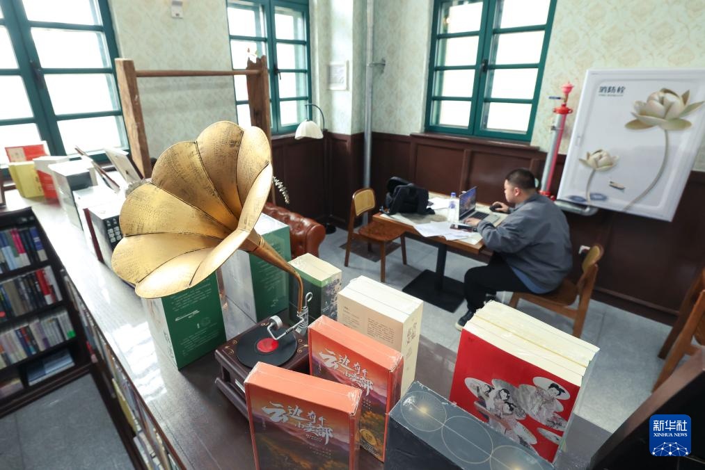 市民在北书房·新华历史书店内处理工作文件(4月21日摄)。新华社记者 许畅 摄