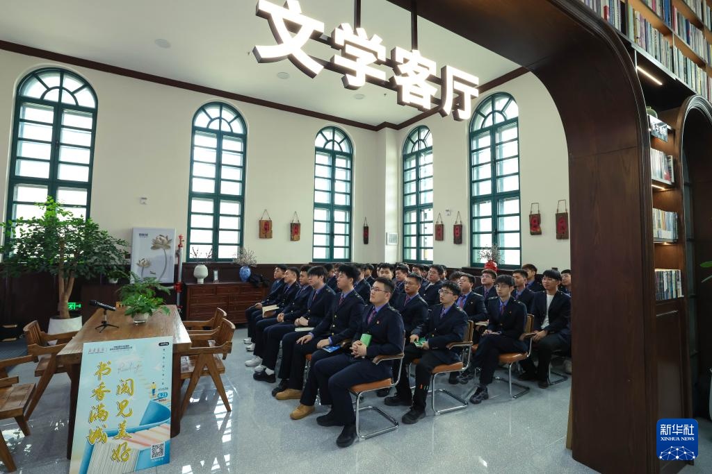 中国铁路沈阳局集团有限公司长春高铁基础设施段职工利用北书房·新华历史书店场地进行世界读书日主题读书分享活动(4月21日摄)。新华社记者 许畅 摄