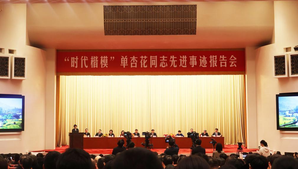 “时代楷模”单杏花同志先进事迹报告会在北京人民大会堂举行。新华社记者 刘雅萱 摄