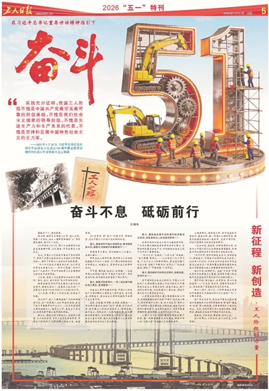 今日起,本报将连续4天推出2026“五一”系列特刊——“奋斗·在习近平总书记重要讲话精神指引下”,围绕“艰苦奋斗、团结奋斗、不懈奋斗”,聚焦广大职工群众、劳模工匠、新就业形态劳动者和各级工会组织,全景展现新时代劳动者和工会干部脚踏实地、奋发进取、拼搏奉献的蓬勃风采,致敬每一位在平凡岗位上创造不凡价值的奋斗者。敬请关注。