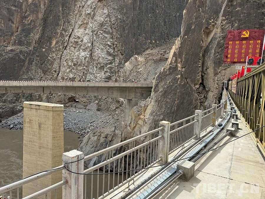 据昌都市八宿县文旅推介员达瓦卓玛介绍,第一代怒江大桥是贝雷桥,使用的是当时军队快速建桥的方法,由钢架组成箱体架设而成。1953年6月,筑路部队到达怒江东岸,刚好是八宿县的雨季,怒江水势汹涌,有很多的暗流、深滩。筑路部队先后4次渡江,以牺牲多人的代价,连接了东西两岸。