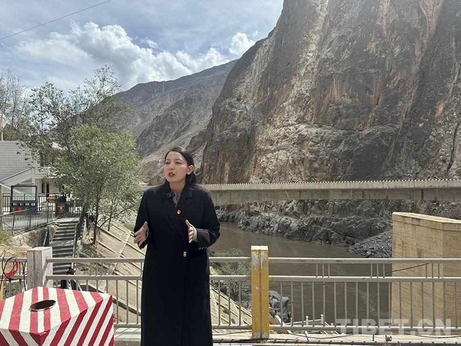 图为八宿县文旅推介员达瓦卓玛介绍怒江大桥相关情况 摄影:王妍丹