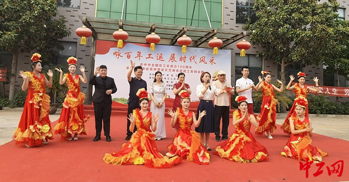 中工网讯 5月14日,全国劳模宣讲暨送文艺演出进工友创业园活动在位于山东省济宁曲阜市的山东新东方服装有限公司举行。