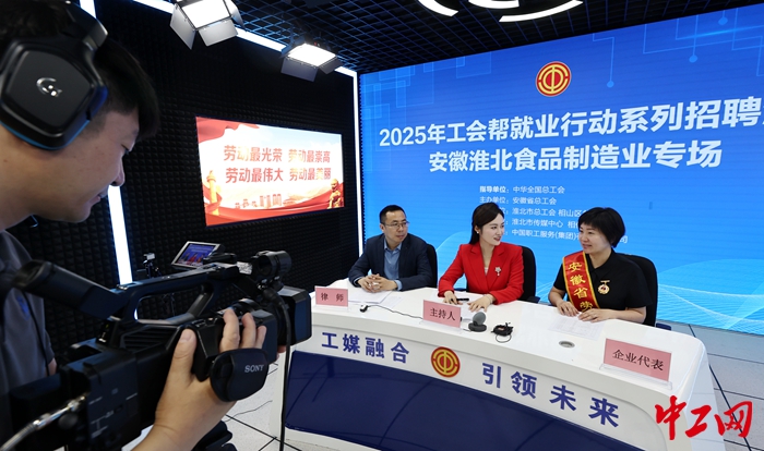 5月15日,安徽省淮北市“工会帮就业”行动启动,现场通过直播方式,向求职者发布就业岗位。淮北市各级工会以社会需求为导向,健全完善“普惠性+精准性”的工会就业服务体系,为求职者和用人单位提供岗位推介、培训管理、校企合作、就业援助等精准就业服务,助力大众就业、企业引才。(赵莎莎/文 张锋/图)