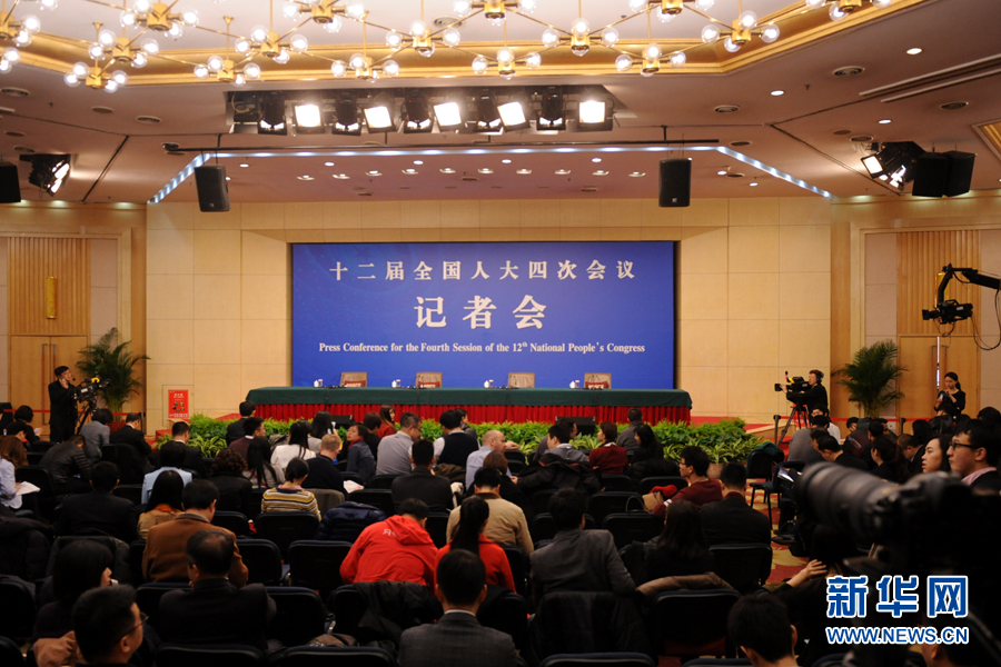 十二届全国人大四次会议新闻中心于3月8日(星期二)10时在梅地亚中心多功能厅举行记者会,邀请外交部部长王毅就“中国的外交政策和对外关系”的相关问题回答中外记者的提问。图为发布会现场。新华网发 陈杰摄
