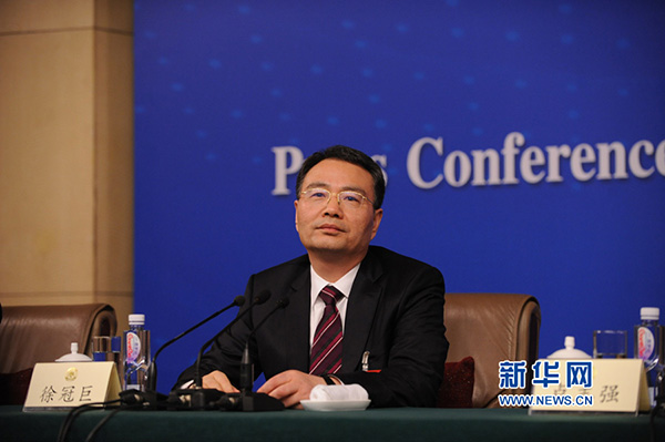 3月11日14时30分,全国政协十二届四次会议在梅地亚中心多功能厅举行记者会,邀请5位企业家委员就提振经济发展信心,企业在调整结构、转型升级、提质增效中发挥积极作用回答记者提问。图为全国政协委员、全国工商联副主席、传化集团董事长徐冠巨。新华网/中国政府网 陈杰 摄