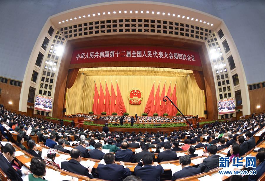 3月13日,十二届全国人大四次会议在北京人民大会堂举行第三次全体会议。 新华社记者王晔摄
