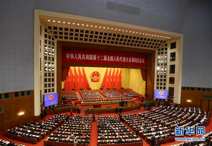 3月13日,十二届全国人大四次会议在北京人民大会堂举行第三次全体会议。新华社记者 丁海涛 摄