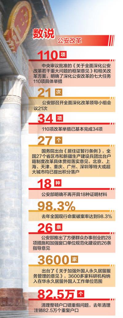 虽然已经不在公安岗位上,但作为“老政法”的湖南省委督办专员胡旭曦代表依然关注着全面深化公安改革以来的新变化,“全面深化公安改革共有七个方面的主要任务、100多项改革措施。”胡旭曦说,随着改革举措逐步推出、不断深化,民众的获得感在不断增强。