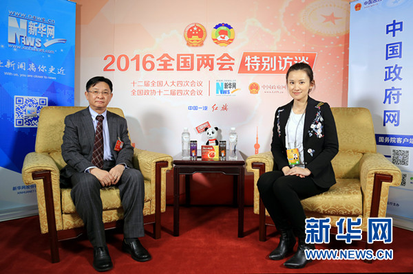全国政协委员、清华大学化工系副主任邢新会做客新华网2016全国两会特别访谈。新华网记者 李何铭 摄