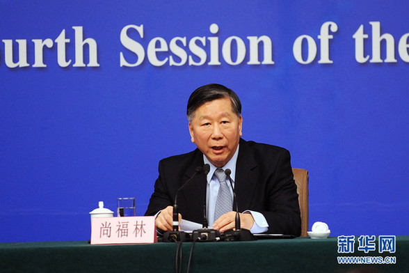 3月12日,十二届全国人大四次会议在梅地亚中心多功能厅举行记者会,邀请中国银行业监督管理委员会主席尚福林、中国证券监督管理委员会主席刘士余、中国保险监督管理委员会主席项俊波回答中外记者的提问。图为中国银行业监督管理委员会主席尚福林答记者问。新华网/中国政府网 陈杰 摄