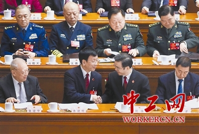 “两高”报告后的握手致意。中工网记者 杨登峰 摄