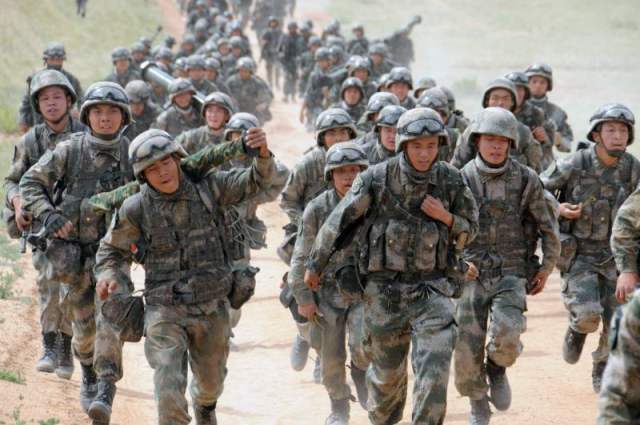 2015年6月3日,参加“跨越—2015·朱日和A”演习的陆军第1集团军某步兵旅正在进行徒步武装奔袭10公里课目考核。新华社记者黎云摄