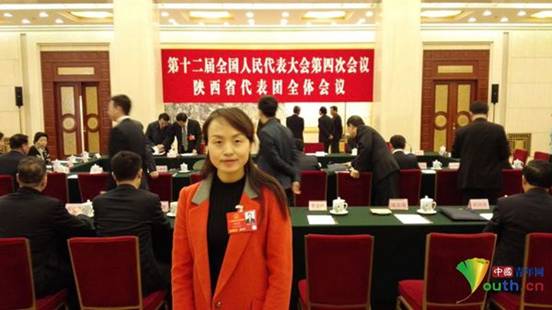 全国人大代表胡春霞在第十二届全国人民代表大会第四次会议陕西省代表团全体会议现场。本人供图