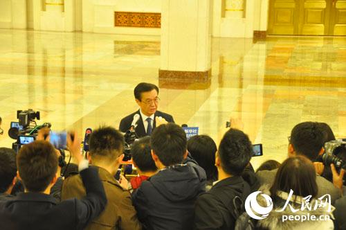 今天下午,全国政协第十二届四次会议在人民大会堂举行闭幕会。会前,商务部部长高虎城在“部长通道”接受了媒体的采访。