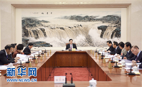 3月15日,十二届全国人大四次会议主席团常务主席第二次会议在北京人民大会堂举行。十二届全国人大四次会议主席团常务主席、全国人大常委会委员长张德江主持会议。新华社记者 李学仁 摄