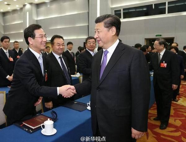 △习近平看望出席全国政协十二届四次会议民建、工商联界委员并参加联组讨论