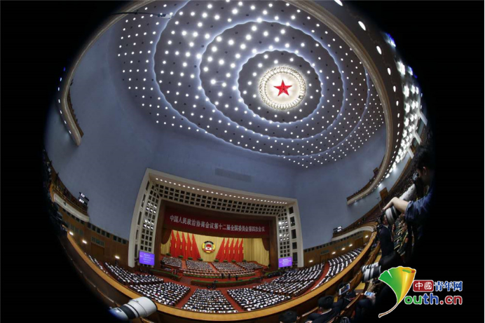 中国人民政治协商会议第十二届全国委员会第四次会议闭幕式在人民大会堂举行。中国青年网记者 张炎良摄