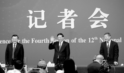 昨天,住建部部长陈政高(中)、副部长陆克华(右)、副部长倪虹出席记者会。京华时报记者陶冉摄