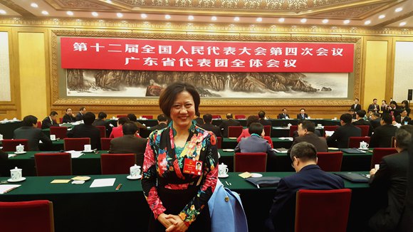 图为:全国人大代表、广东省惠州市旅游局局长黄细花