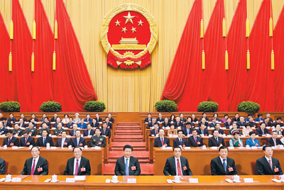3月16日,十二届全国人大四次会议在北京人民大会堂闭幕。习近平、李克强、俞正声、刘云山、王岐山、张高丽等党和国家领导人在主席台就座。新华社记者 李学仁摄