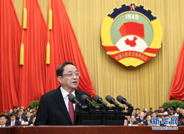 3月3日,中国人民政治协商会议第十二届全国委员会第四次会议在北京人民大会堂开幕。这是俞正声代表政协第十二届全国委员会常务委员会作工作报告。 新华社记者 庞兴雷 摄