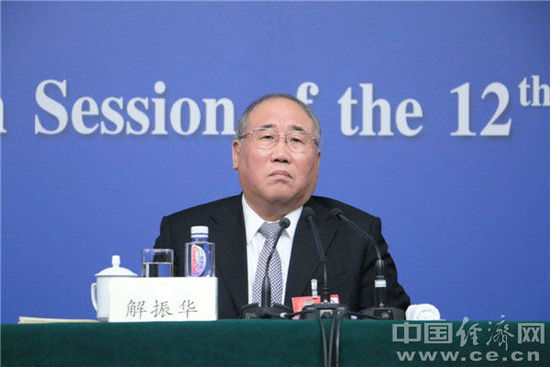 图为委员解振华回答记者提问。中国经济网记者 韩璐/摄