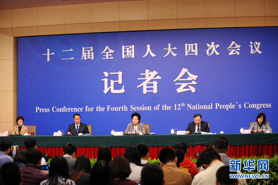 十二届全国人大四次会议新闻中心将于3月8日(星期二)15时在梅地亚中心多功能厅举行记者会,邀请国家卫生和计划生育委员会主任李斌、副主任马晓伟和副主任王培安就“实施全面两孩政策”的相关问题回答中外记者的提问。图为发布会现场。新华网/中国政府网记者 陈杰 摄