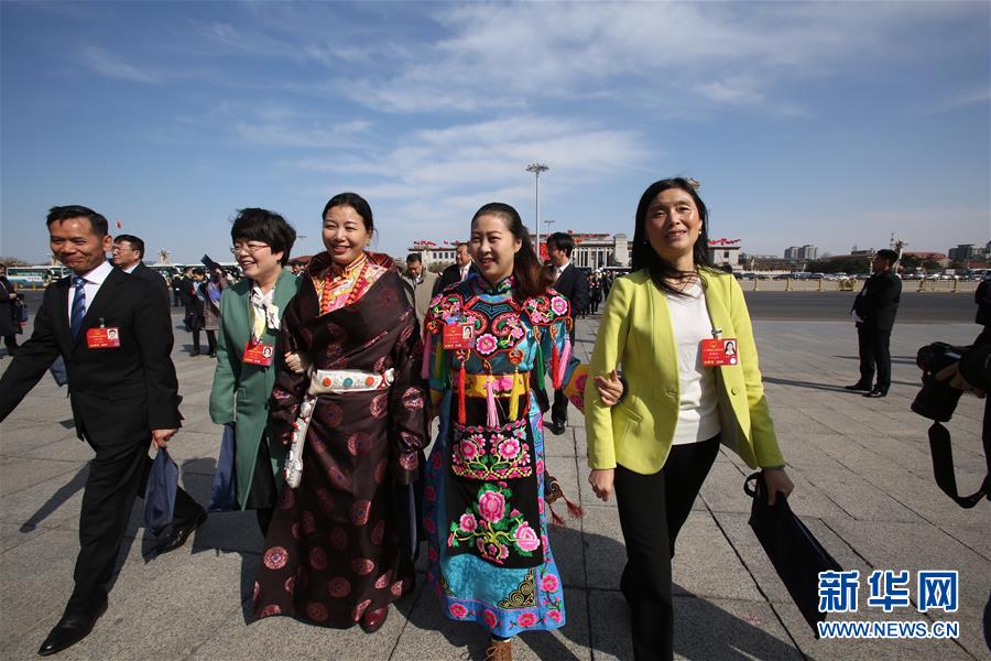 3月9日,十二届全国人大四次会议在北京人民大会堂举行第二次全体会议。这是代表走向人民大会堂。 新华社记者张铖摄