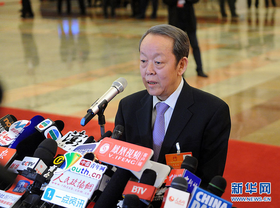 3月9日下午3时,第十二届全国人民代表大会第四次会议在人民大会堂举行第二次全体会议,听取全国人大常委会委员长张德江关于全国人民代表大会常务委员会工作的报告,听取全国人大常委会副委员长李建国关于中华人民共和国慈善法草案的说明。图为国务院港澳事务办公室主任王光亚在“部长通道”接受记者采访。新华网/中国政府网 陈竞超 摄