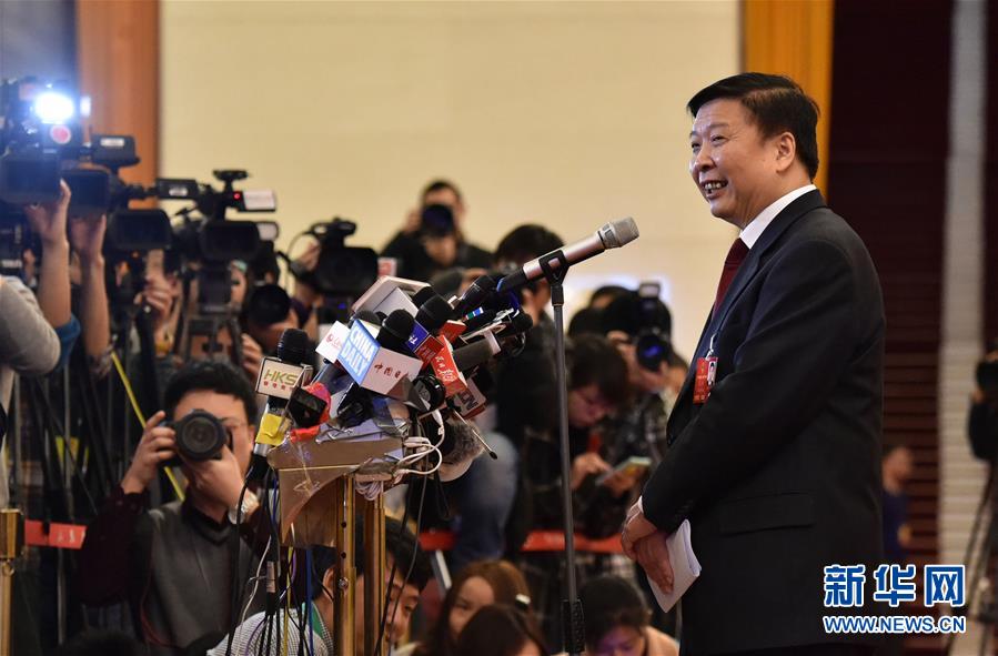 3月9日,十二届全国人大四次会议在北京人民大会堂举行第二次全体会议。这是会前,国土资源部部长姜大明接受媒体记者采访。新华社记者赵颖全摄