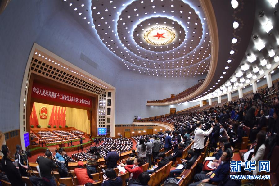 3月9日,十二届全国人大四次会议在北京人民大会堂举行第二次全体会议。 新华社记者 薛玉斌 摄