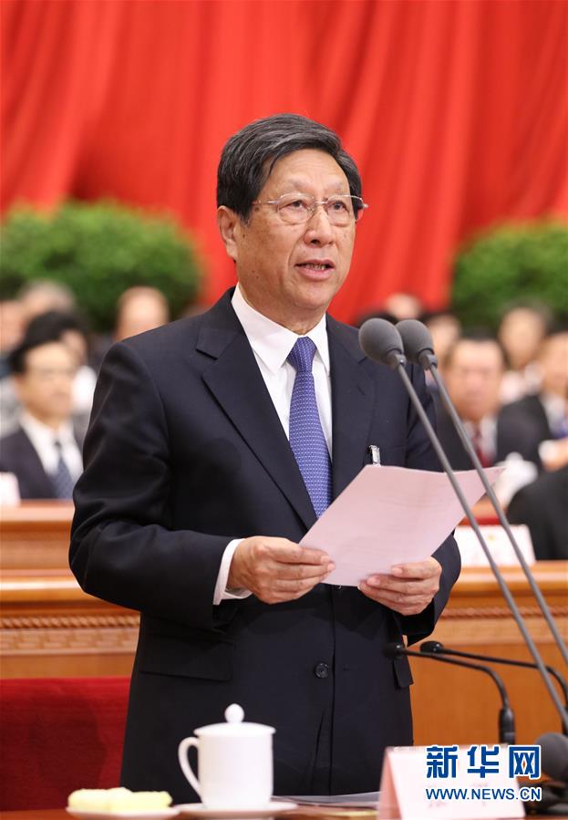 3月9日,十二届全国人大四次会议在北京人民大会堂举行第二次全体会议。张平主持会议。 新华社记者鞠鹏 摄