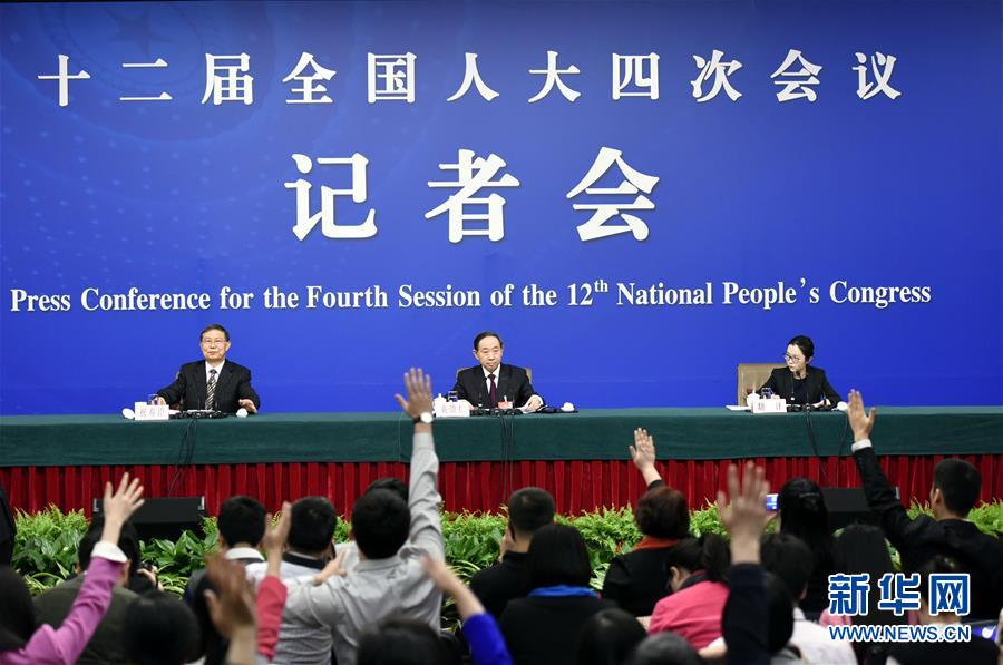 3月10日,十二届全国人大四次会议新闻中心举行记者会,邀请教育部部长袁贵仁就“教育改革和发展”的相关问题回答中外记者的提问。新华社记者 陈益宸 摄