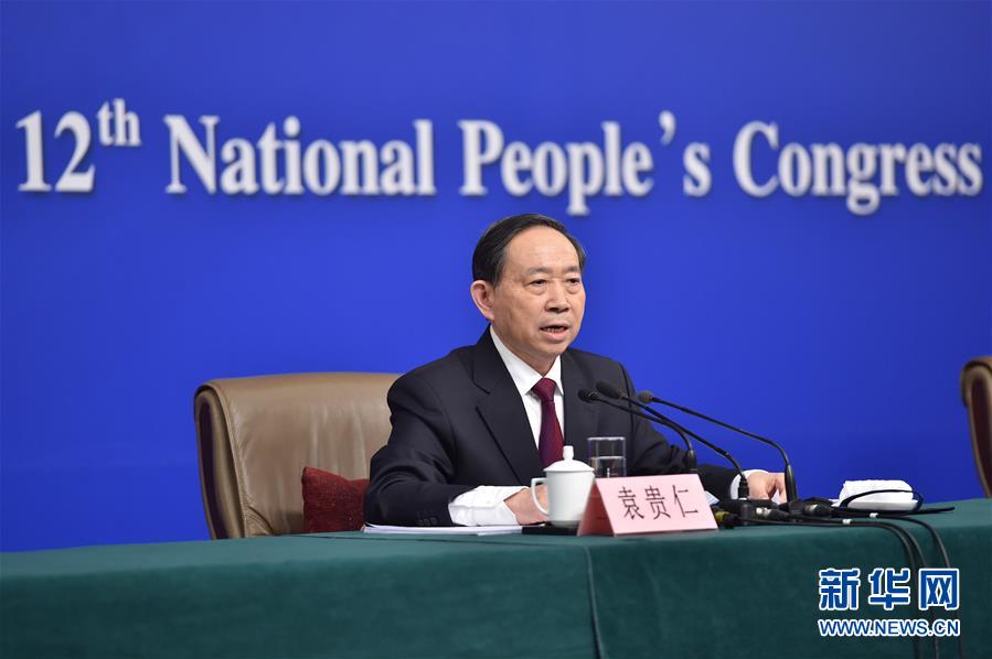 3月10日,十二届全国人大四次会议新闻中心举行记者会,邀请教育部部长袁贵仁就“教育改革和发展”的相关问题回答中外记者的提问。这是袁贵仁在回答记者提问。新华社记者 李鑫 摄